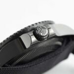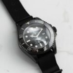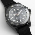 • Whilst the watch hasn’t been altered internally and retains all of its seafaring characteristics, it has been finished with a diamond-like carbon coating inspired by an all-black military-issue Submariner from the 1950s