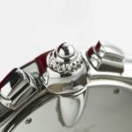 • The silver dial reflects automotive design influences and resembles the dashboard of a classic car in its display of hours, minutes, running seconds and the chronograph