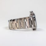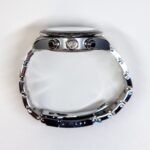 • The stainless-steel bracelet is satin finished with rivet-style polished sides, and it has a folding clasp with a safety catch