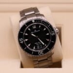 This Blancpain Fifty Fathoms Grande Date is unpolished and in excellent condition. It is the 45mm, titanium model with big date at 6 o’clock. It is complete with the boxes, papers and was just sold in November of 2021. The watch is originally a strap model but a factory titanium bracelet was purchased and put on the watch. The original sailcloth strap and factory tang buckle are included along with an extra factory black rubber strap.