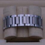 The bracelet is in very good condition with some light swirls and marks. It has all the links and will fit around a 7.75″ wrist.
