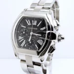 This Cartier Roadster XL Chronograph features a 43mm case with a black roman numeral dial, this is the newer model dial. Cartier Roadster Chronograph Stainless Steel Men’s Watch W62020X6 – Automatic winding chronograph with date. Stainless steel case (43mm x 48mm).
