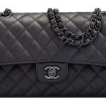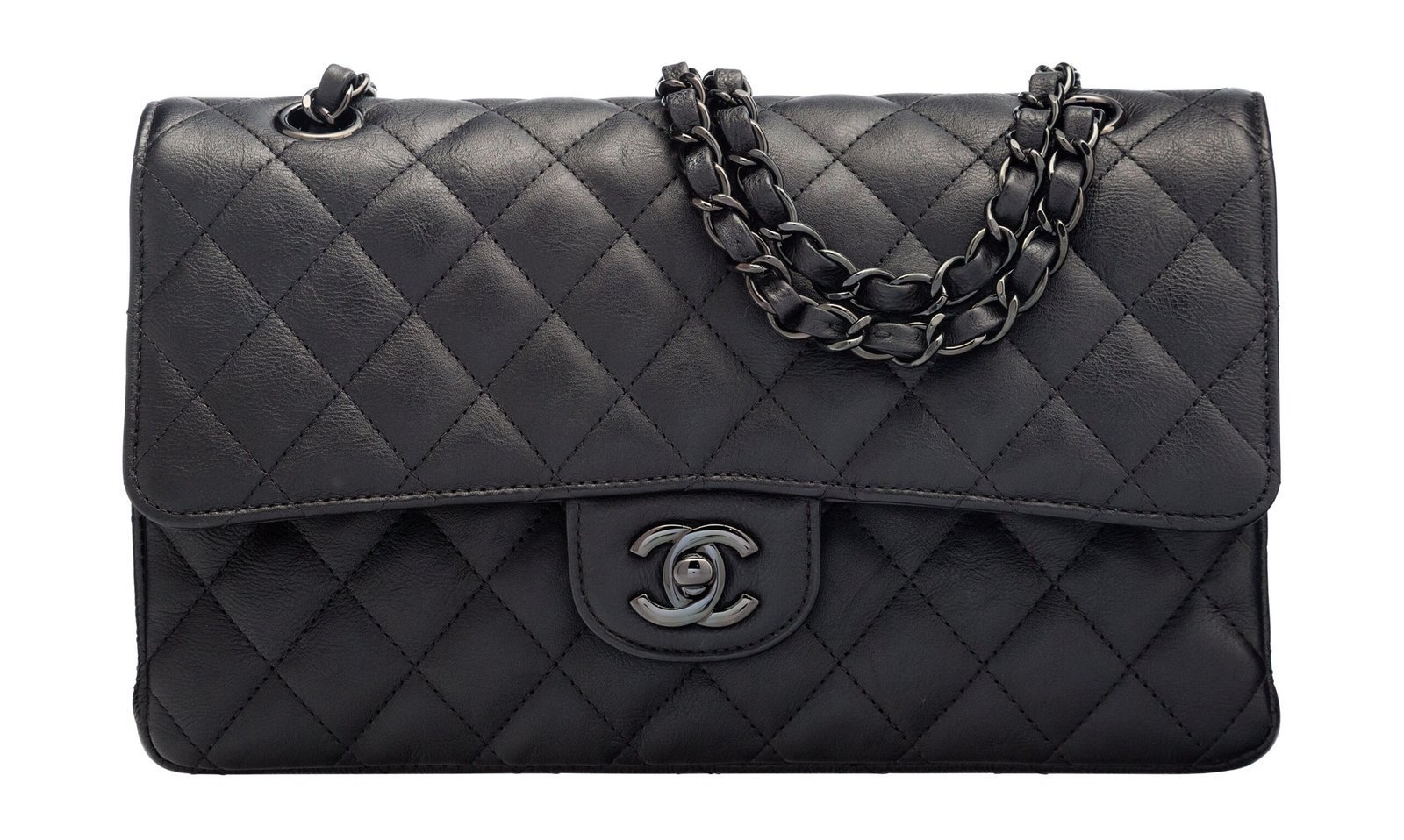 Chanel So Black Aged Lambskin Leather Medium Double Flap Bag with Black Hardware