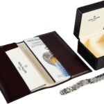 This timepiece is accompanied by the Certificate of Origin listing date of sale as 12-14-03, inner and outer boxes (not interior pillow), all booklets and bi-fold, hang tag and additional Patek Philippe steel bracelet for the model (no end links included)