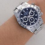 Measuring 40mm in diameter, the Daytona wears on the wrist with a comfortable familiarity that enables almost anyone to easily pull it off. But, without doubt, the latest generation’s most significant upgrade was Rolex’s new (at the time) in-house automatic cal. 4130 chronograph movement. Designed to be ruthlessly efficient, it has just 201 parts—a 20% decrease on the previous movement, the cal. 4030—making for an even more reliable movement requiring even less servicing.