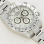 Released in 2000 as a brand new generation of Daytona, the ref. 116520 featured much of the same unchanged design that the previous “Zenith” Daytona had, except for several relatively minor details. To begin with, the dial layout had changed slightly, so the running seconds subdial went from 9 o’clock to 6 o’clock, and the subdials were no longer in line with the center of the dial. Instead, they moved up slightly above the middle of the dial (running from 9 to 3 o’clock). Additionally, Rolex gave the new Daytona broader indices to accommodate more lume, longer lugs, and a mirror finish on the case flanks to differentiate the latest generation even further.